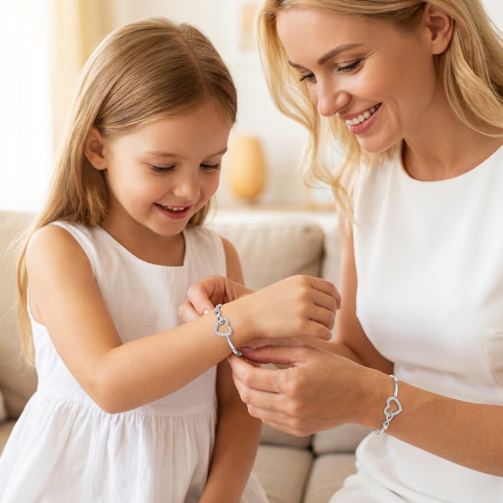 Mum and Daughter Infinity Heart Bracelet with Gift Box
